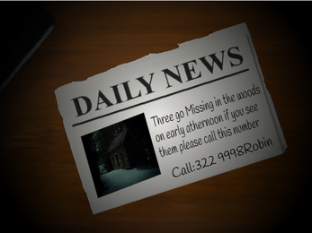 it's 06/02/2011 you get a newspaper telling you 3 13 year olds vanished in the woods days ago it also it says it wants you to find them but you did not know you just joined Gary Game so you have to watch out and prey to yourself to survive the night from Gary and his friends once you do make it he will leave you alone and you will say you found so thats it.
